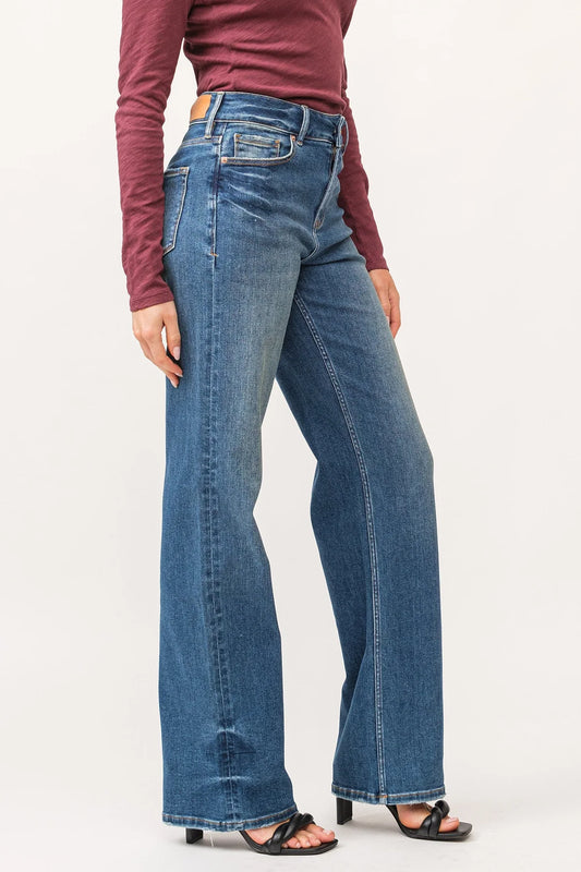 HOLLY SUPER HIGH RISE CUFFED STRAIGHT JEANS - LAKE SHORE