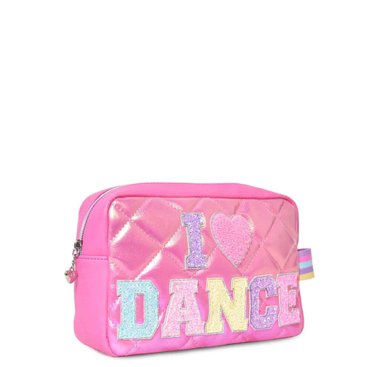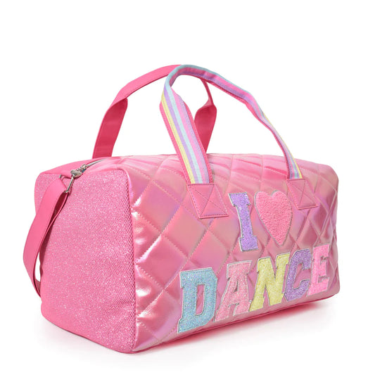 I LOVE DANCE QUILTED METALLIC LARGE DUFFLE BAG - PINK