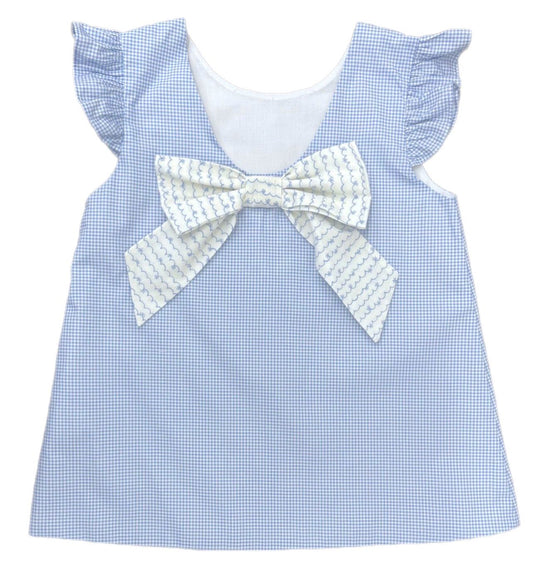 ISABELLA SHORT SET - BLUE GINGHAM TOP W/BACK BOW IN BLUE BOW AND SHORTS