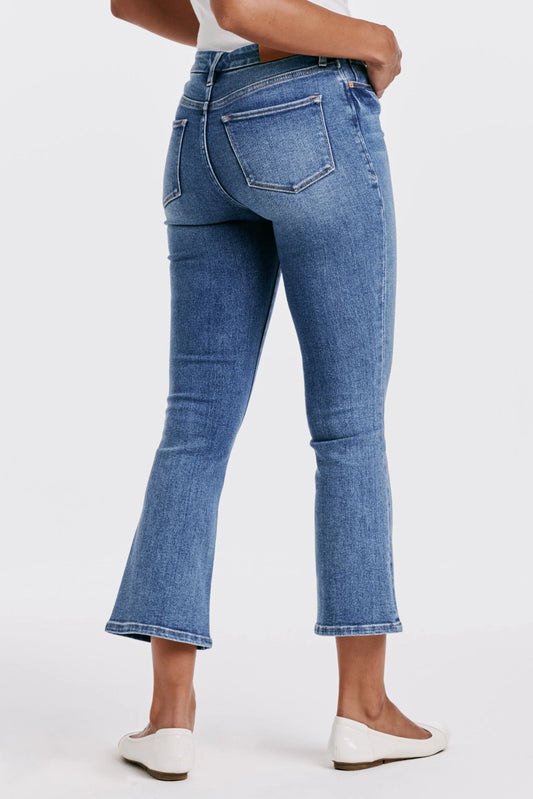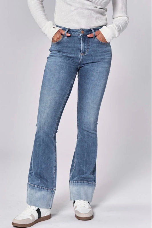JEANNE MID RISE CROPPED FLARE JEANS - WHEAT