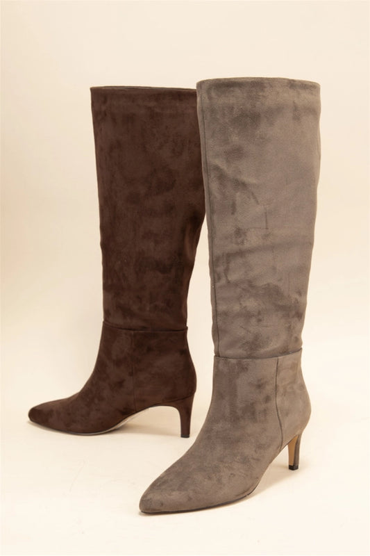 JOANNA FAUX SUEDE POINTED TOE TALL BOOT - BLACK