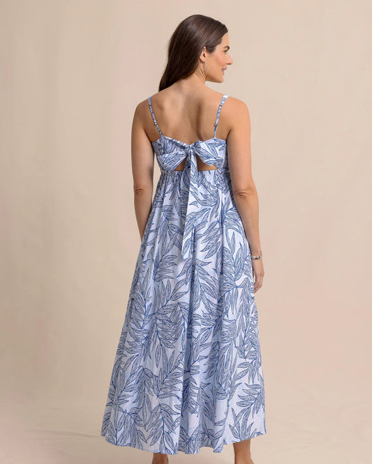 LEIGHTON BLUE PALMS SEERSUCKER TIE BACK MAXU DRESS - BLUE LOLITE