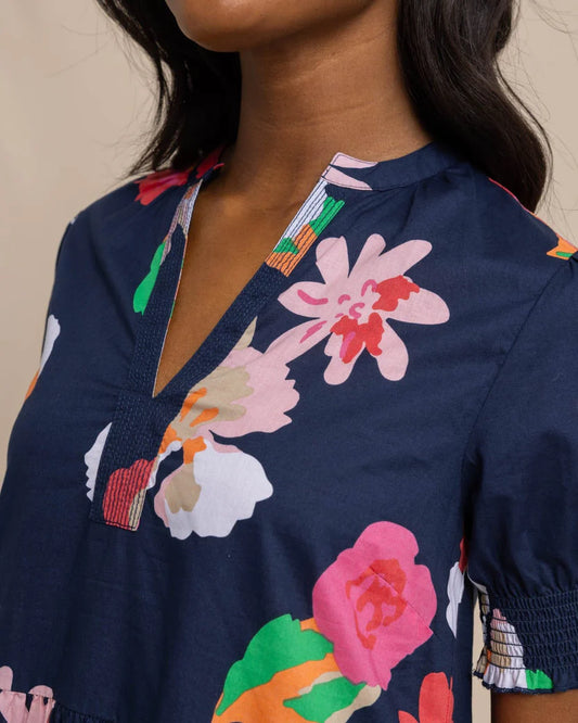 MINA GARDEN SPLENDOR TIERED DRESS - BLUE