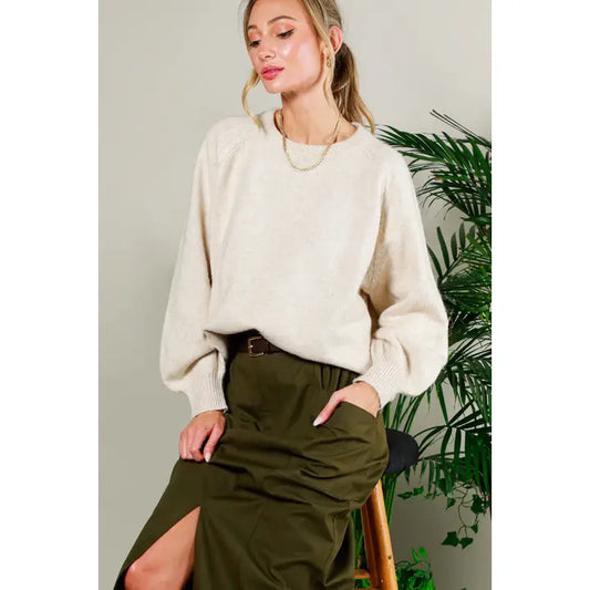 BALLOON SLEEVE SWEATER TOP - OATMEAL