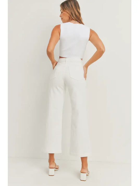 PATCH POCKET WIDE LEG JEANS - OFF WHITE