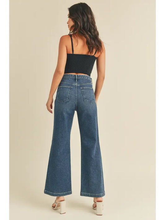 PATCH POCKET WIDE LEG JEANS - DARK WASH
