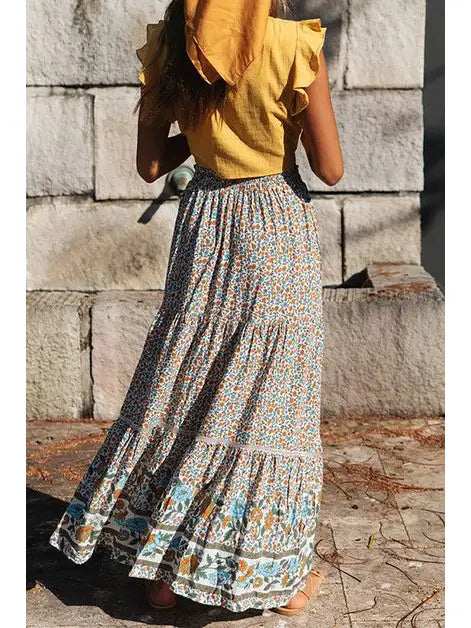 POLKA DOT RUFFLE MAXI SKIRT - BEIGE