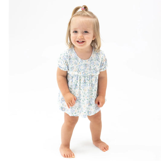SMOCKED RUFFLE BUBBLE W/ SKIRT - BABY VERONICAL FLORAL