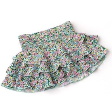 SMOCKED RUFFLE SKIRT - MINT DITSY FLORAL