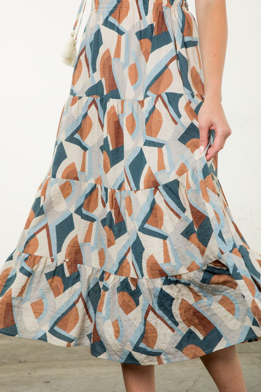 SMOCKED WAIST PRINT MAXI DRESS - BLUE