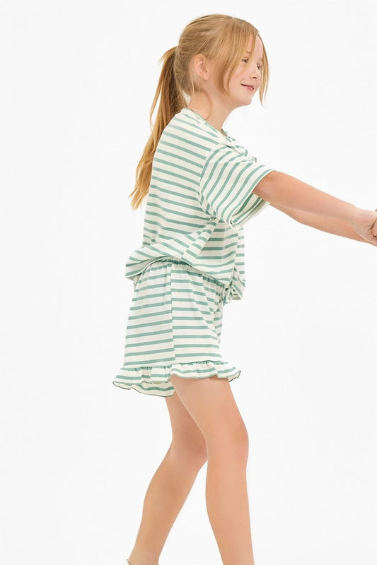 STRIPE CROP TOP AND RUFFLE SHORT SET - MINT