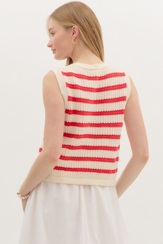 STRIPE SLEEVELESS KNIT SWEATER - RED