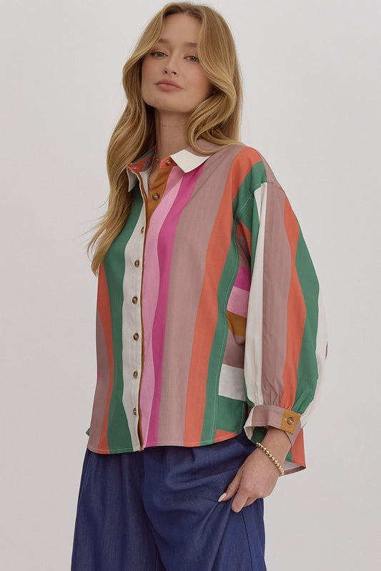 STRIPED BUTTON DETAIL SWEATER - DARK TAUPE/BLACK