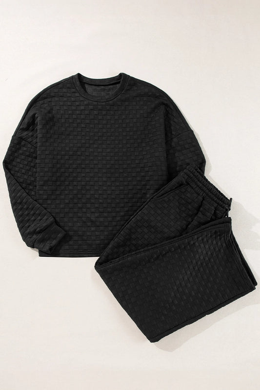TEXTURED PULLOVER SET - BLACK