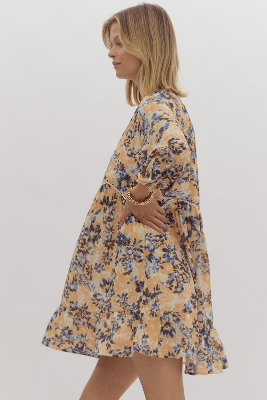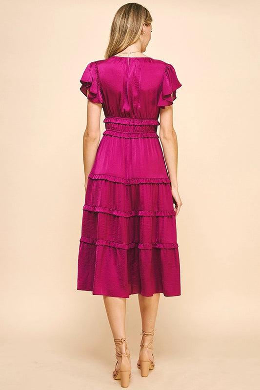 V NECK SHORT SLEEVE MIDI DRESS - TORTILLA BROWN