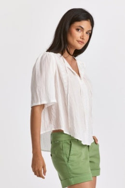 V NECKLINE PUFF SLEEVE TOP - GREEN