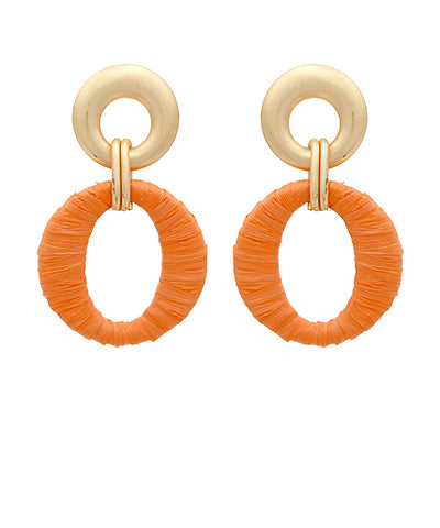 WRAPPED W/RAFFIA OVAL EARRINGS - ASSORTED