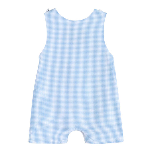 BLUE GINGHAM EASTER BUNNY SMOCKED SHORTALLS