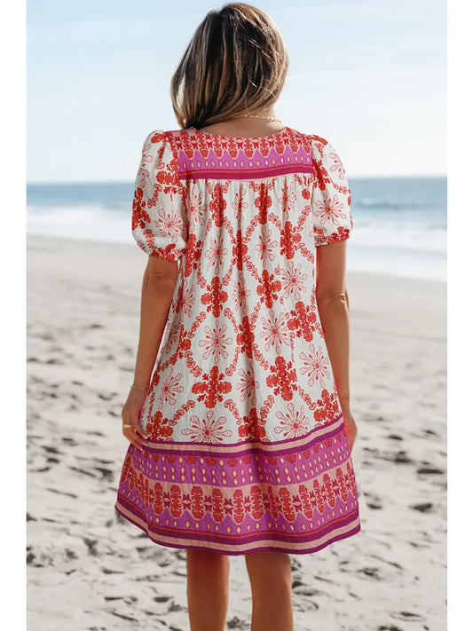 BOHO FLORAL SHORT SLEEVE MINI DRESS