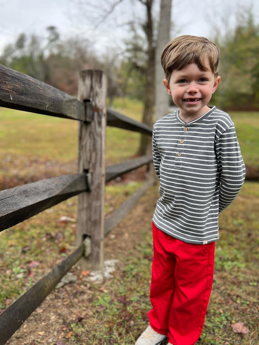 ADAMS RIBBED HENLEY - CHARCOAL/CREAM