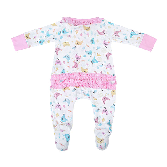 CHICKADEES PRINTED RUFFLE FOOTIE