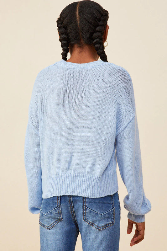 COZY GRAPHIC KNIT PULLOVER - BLUE