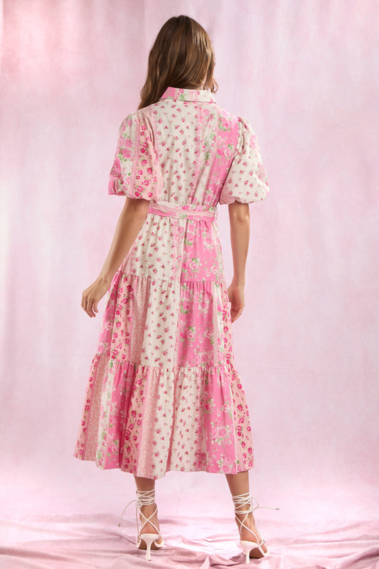 COTTON POPLIN PATCHWORK DRESS - PINK