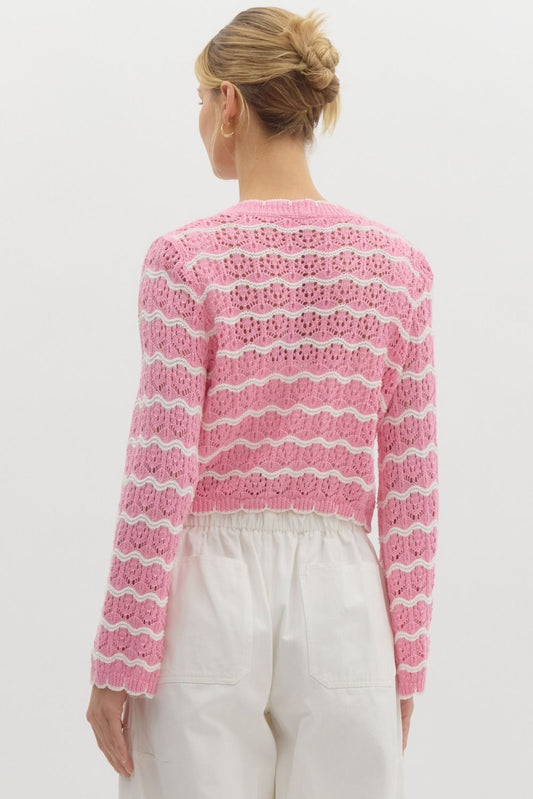 CROPPED KNIT STRIPE CARDIGAN - PINK