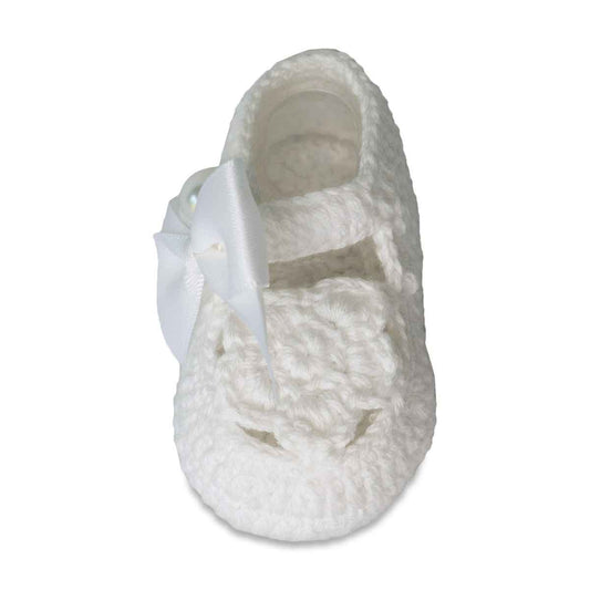 ELLA NEWBORN WHITE CROCHET BOOTIES WITH BOWS