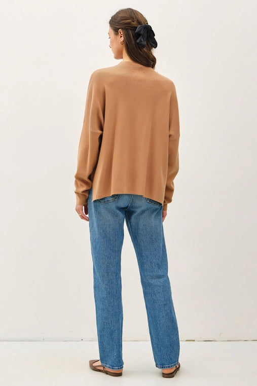 Sold outFLOWY MOCK NECK SWEATER - CAMEL