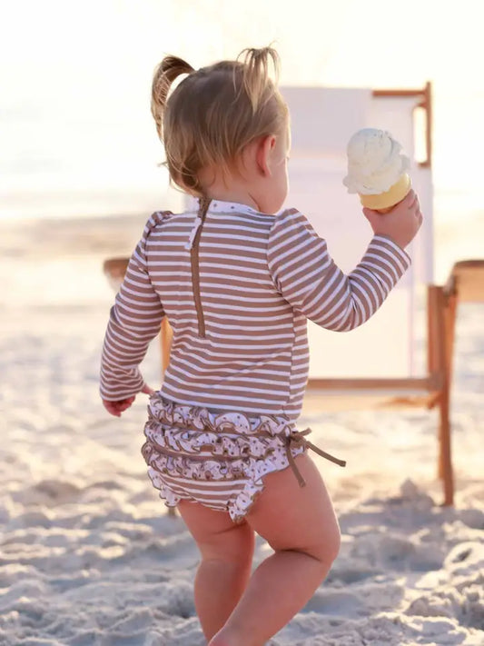 LONG SLEEVE RASH GUARD WITH RUFFLE BOTTOM - SANDY STRIPES