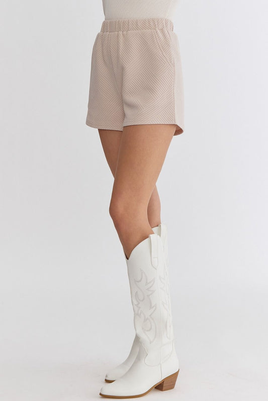TEXTURED HIGH WAIST SHORTS - TAUPE