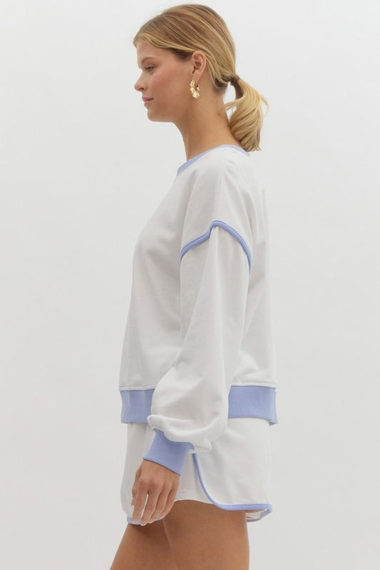 ROUND NECK CONTRAST TOP - OFF WHITE