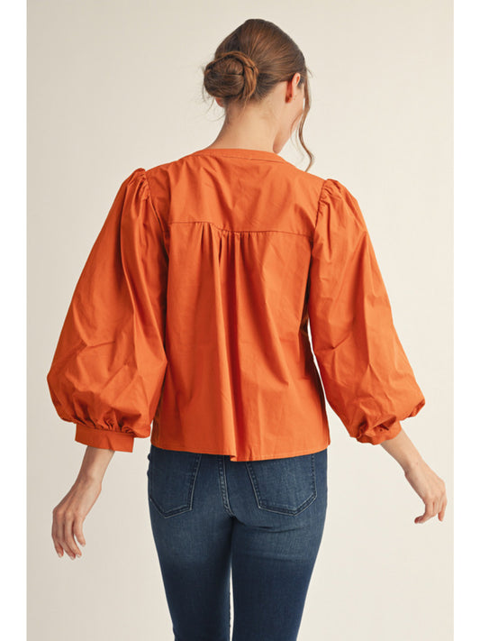 PUFF SLEEVE PEPLUM TOP - CAMEL