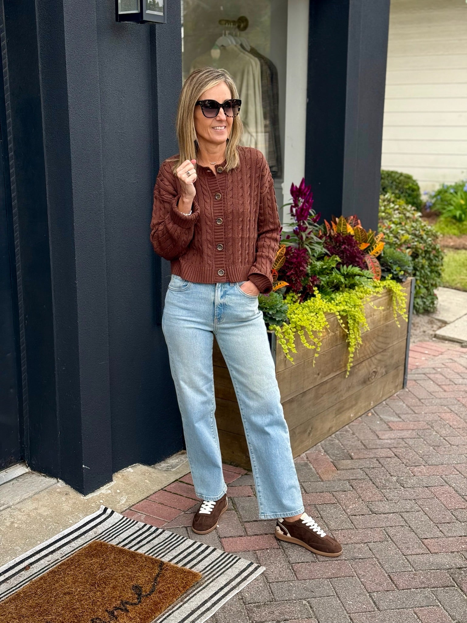 CABLE KNIT SWEATER LONG SLEEVE CARDIGAN - CHOCOLATE
