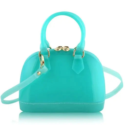 Cate is the original classic jelly bag for carrying all of her hopes, dreams and beautiful things. Made of durable jelly material with matching handles and zipper entry. She comes with a matching cross-body strap and is available in lots of fun colors including sparkle!