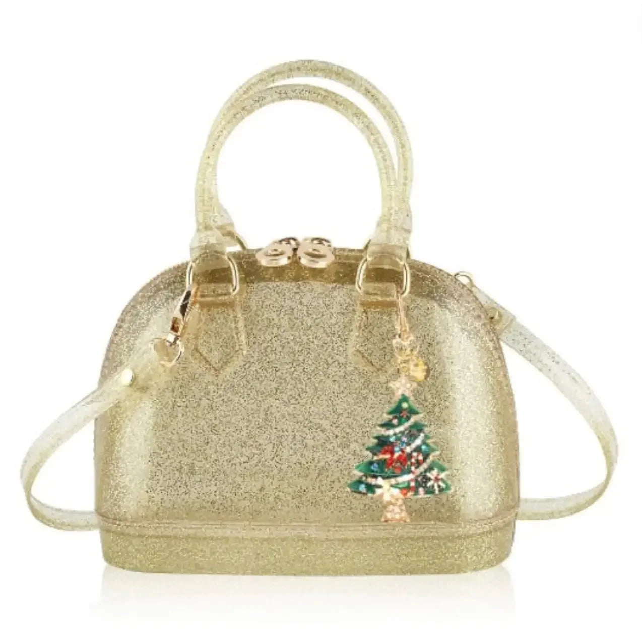 Introducing the Gold Sparkle Cate: Angel Tree Edition. A radiant accessory that does more than just dazzle—it makes a difference. Each purse comes with a beautiful Angel Tree charity charm, symbolizing hope and giving. When you purchase this item, 100% of the charm proceeds go directly to providing Christmas to families in need.