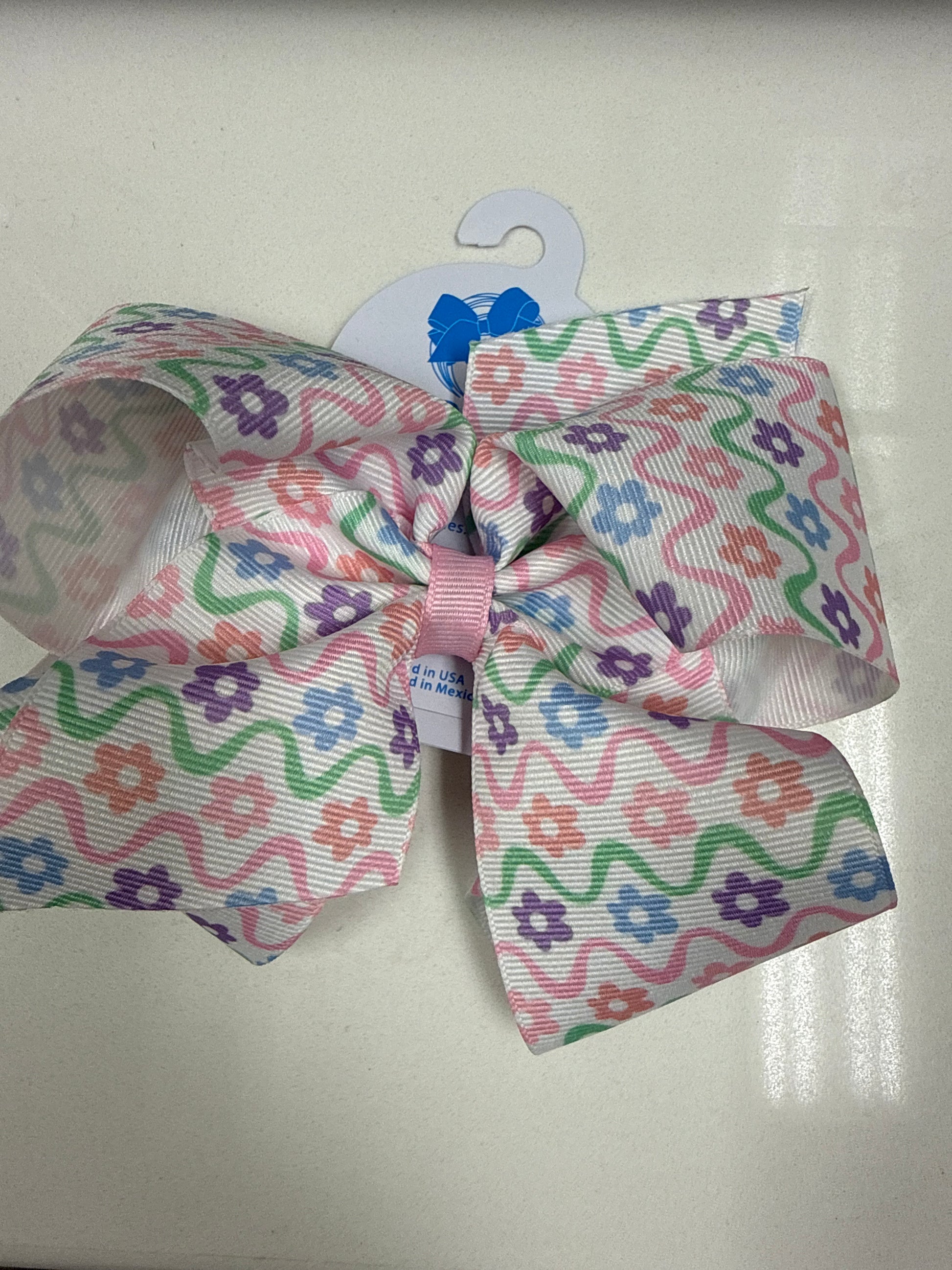 FLOWER PRINT GROSGRAIN BOW - ASSORTED SIZES