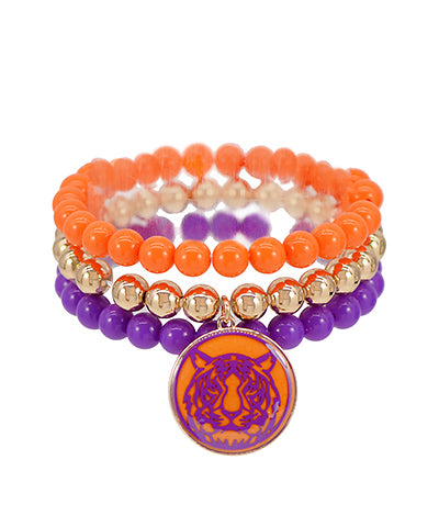 GAME DAY CHARM 3 BRACELET SET - ORANGE/PURPLE