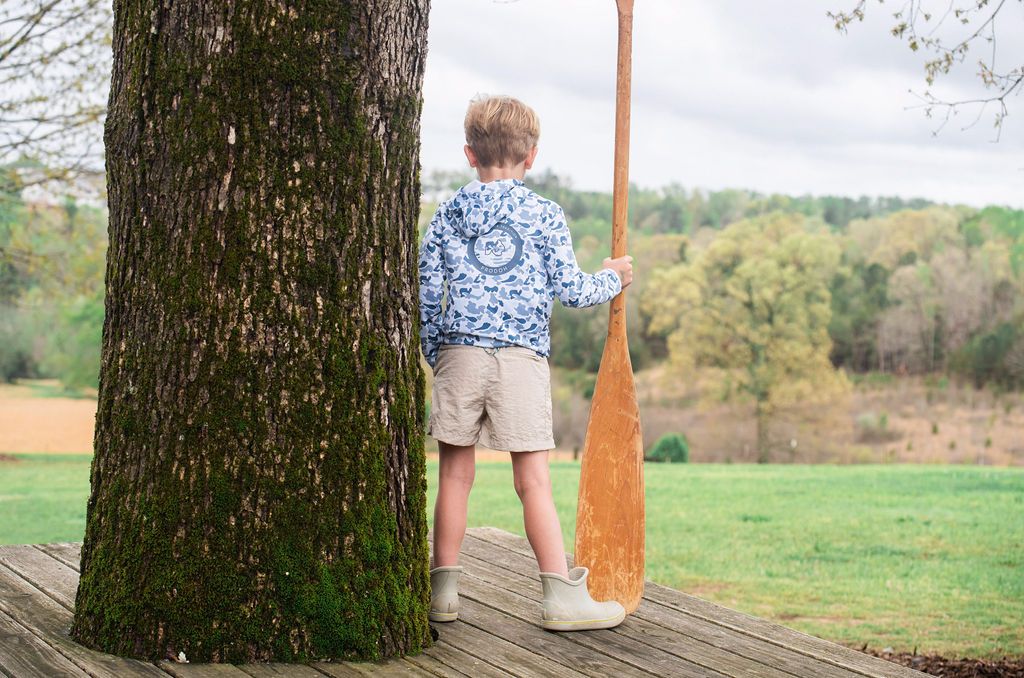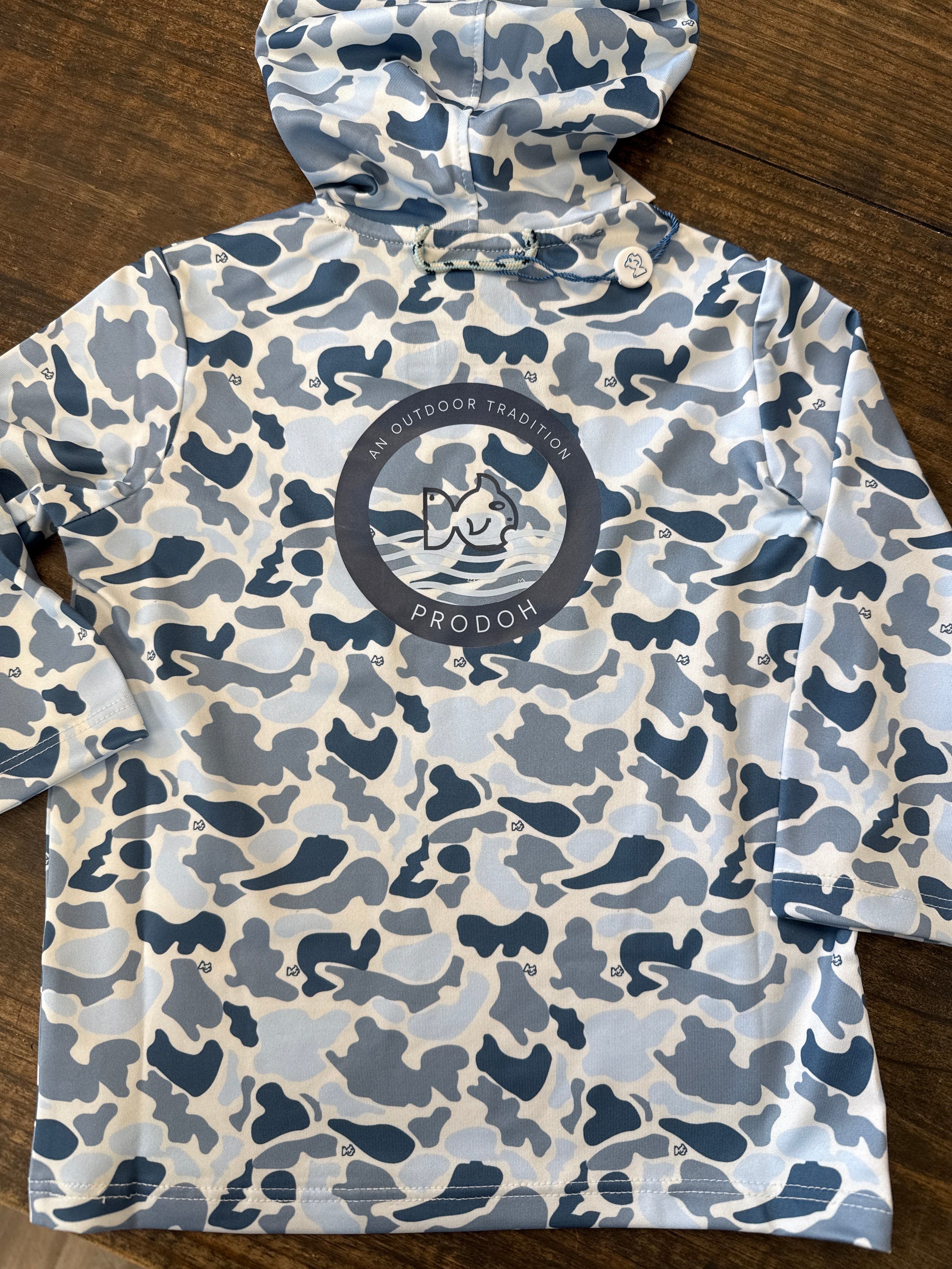 KID'S PRO PERFORMANCE HOODIE T-SHIRT - BLUE BREAK POINT CAMO