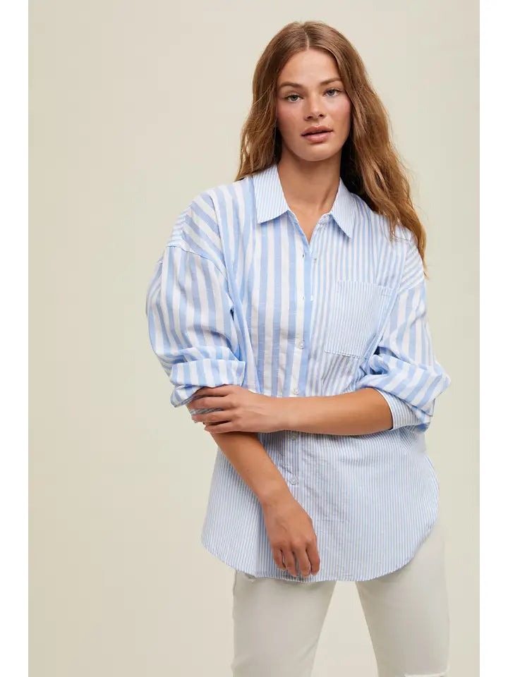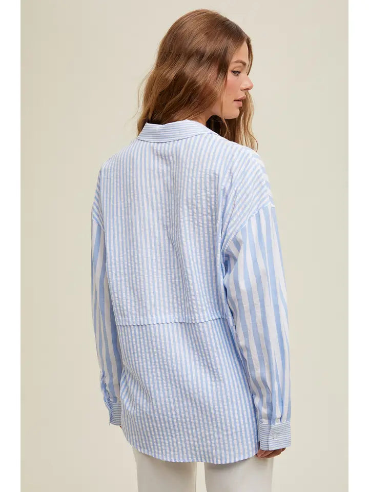 MULTI-STRIPED BUTTON UP SHIRT - BLUE/WHITE