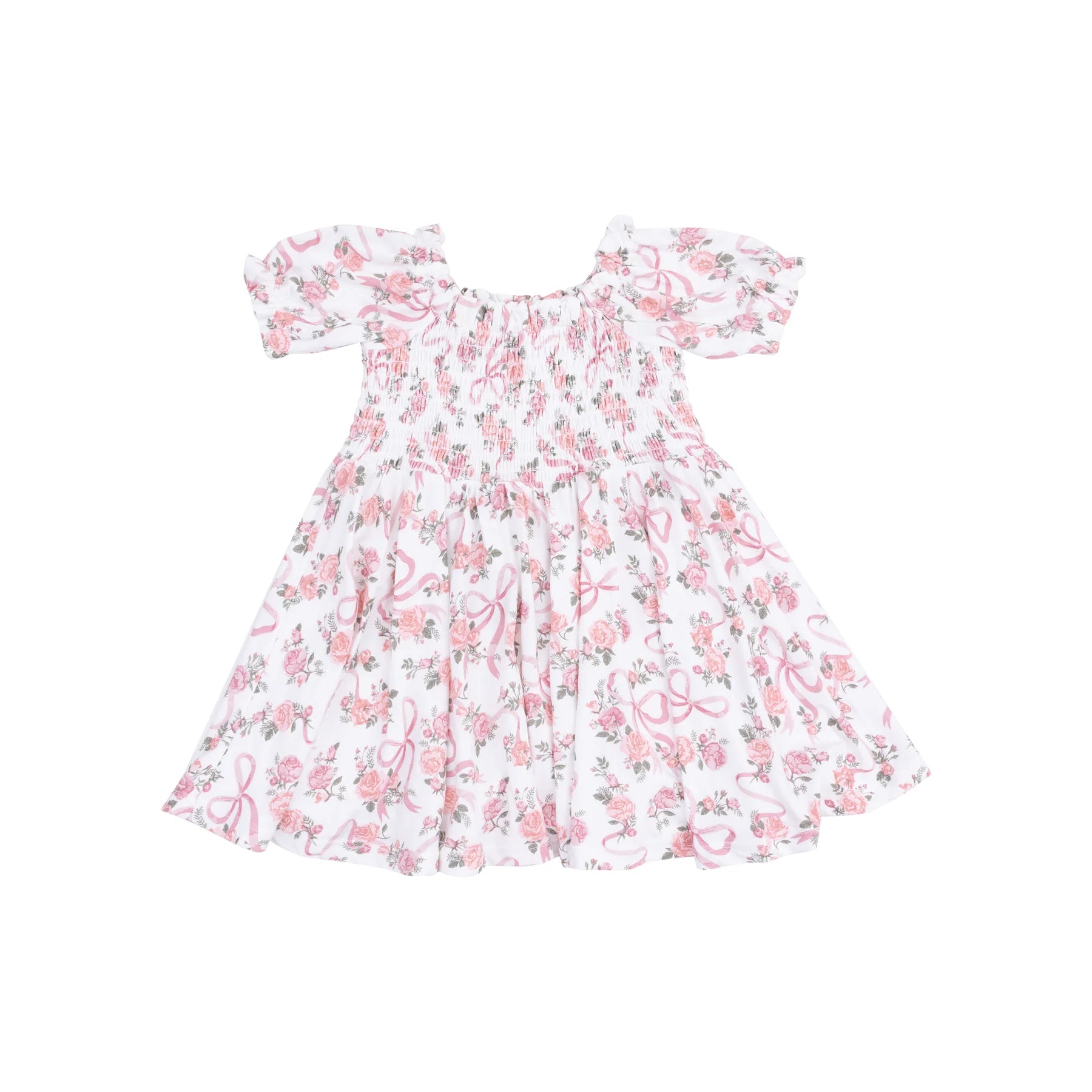 PUFF SLEEVE SMOCKED DRESS - RIBBONS AND FLOWERS