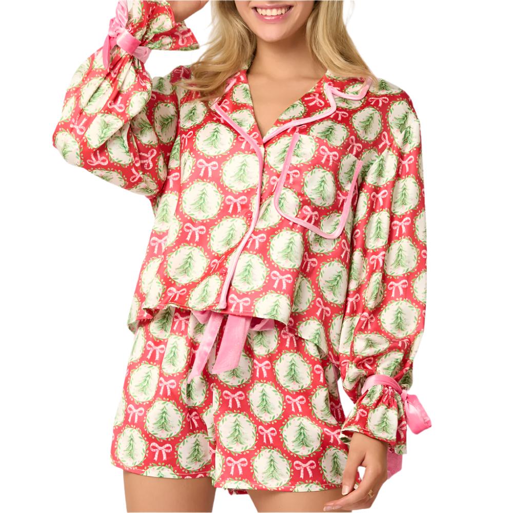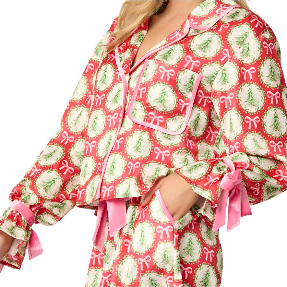 SATIN CHRISTMAS TREE & BOW PAJAMA SET