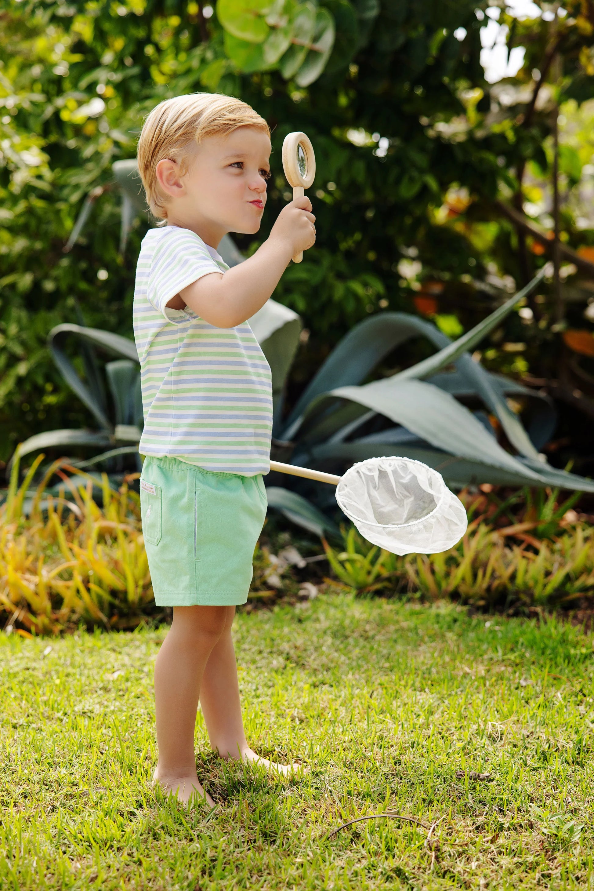 Our Sheffield Shorts in Grace Bay Green with Saratoga Stone Stork are preppy and practical! The elastic waist makes diaper changes and potty training so much easier, and you'll love how put together he looks. Pair them with any of our Prim & Proper Polos or Carter Crewnecks.