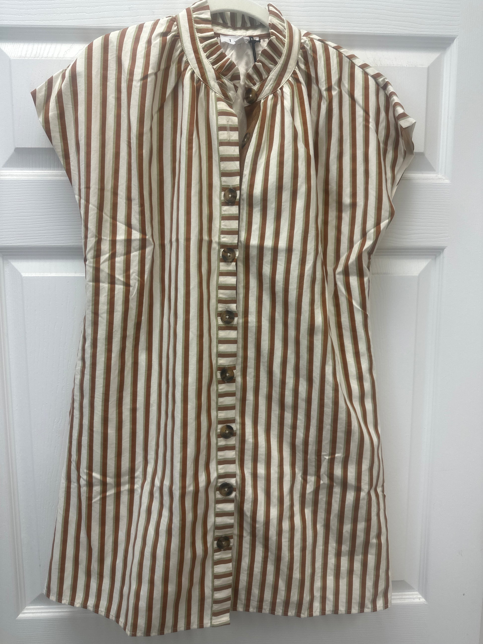 STRIPE BUTTON UP DRESS - BROWN