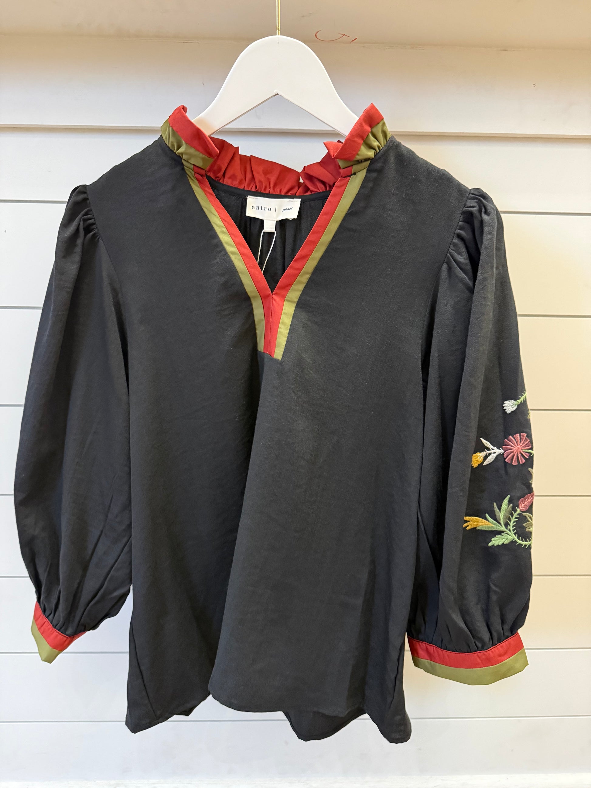 STRIPED 3/4 SLEEVE TOP - BLACK