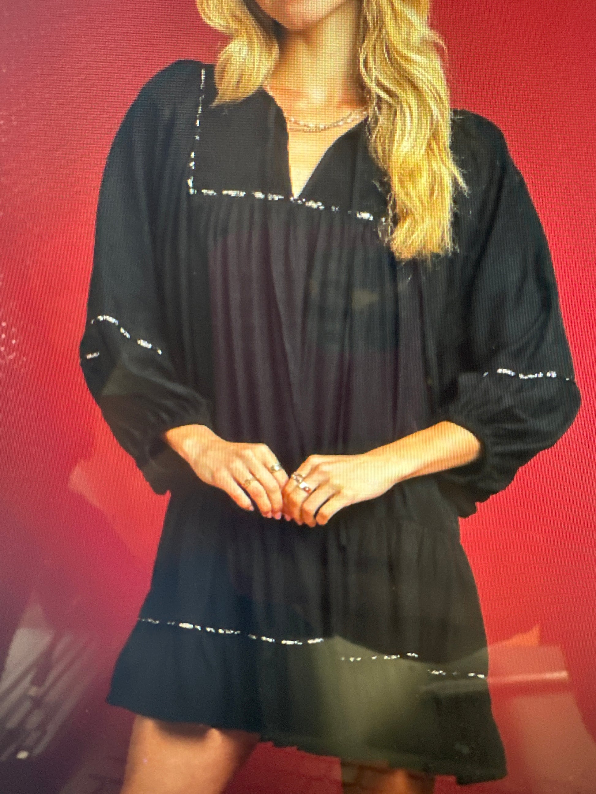 TIERED LONG SLEEVE MINI DRESS - BLACK